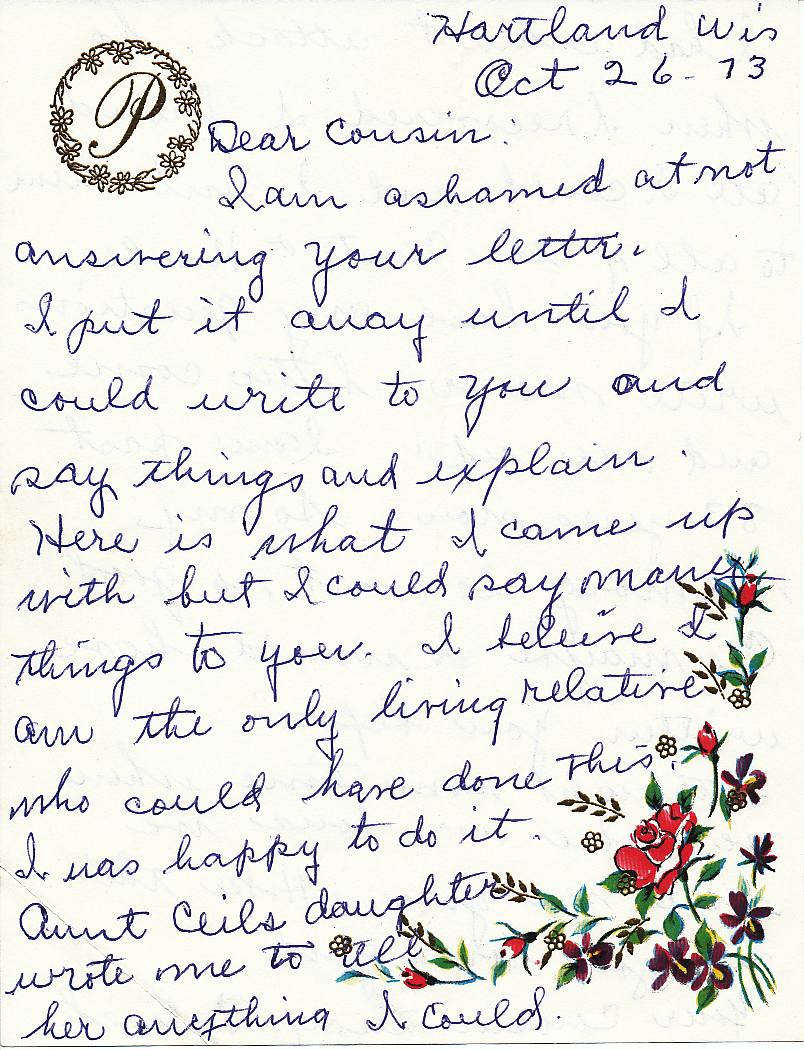 This is a letter sent to my mother in October, 1973 that describes